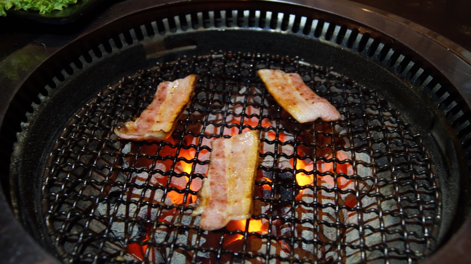 Love how the ratio of lean meat & fats are proportion- we were advised to start cooking the bacon first as the lard oil will prevent the sticking of the meat on the grill.